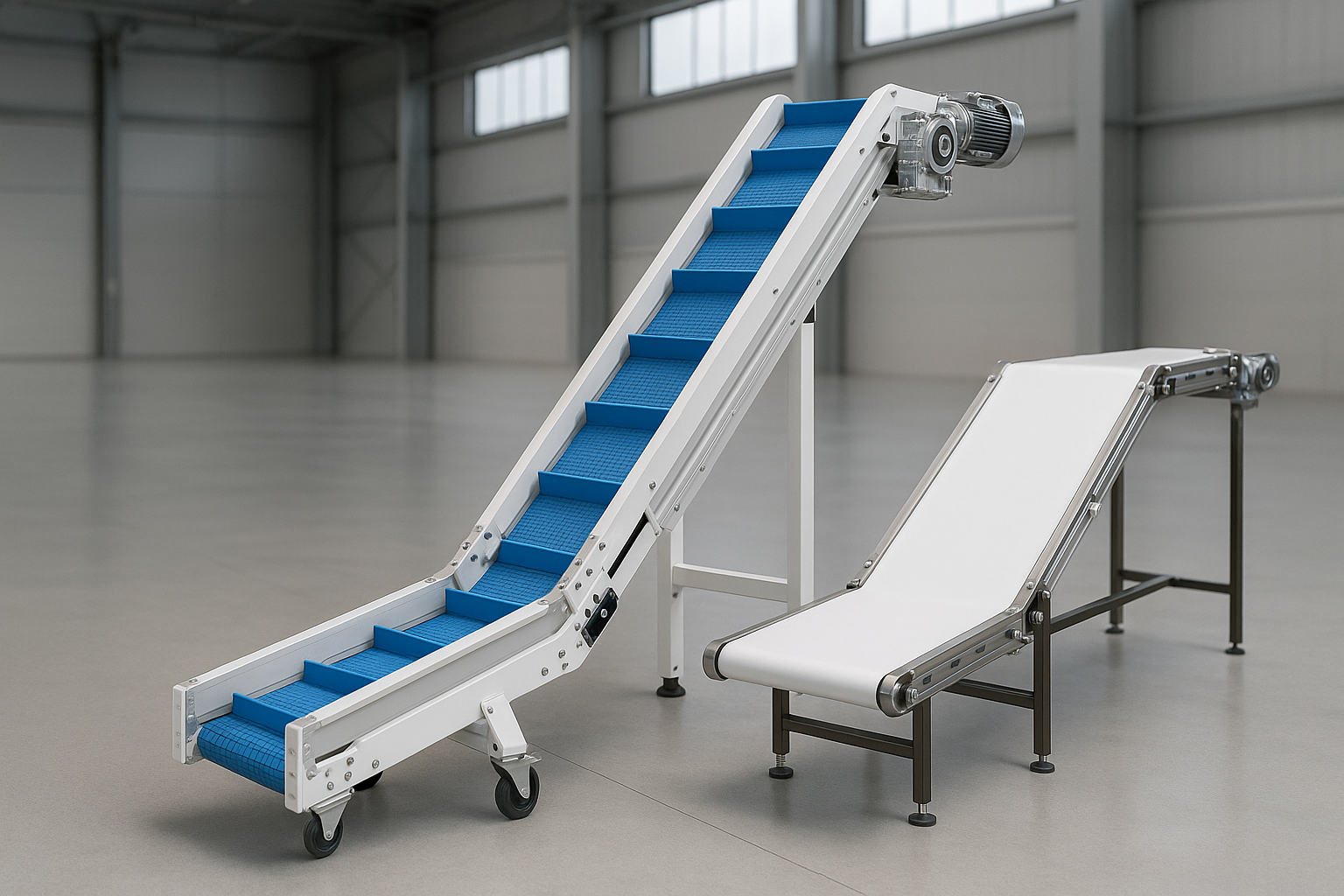 • Eğimli Bantlı Konveyör – Yüksek/düşük kot farkı için